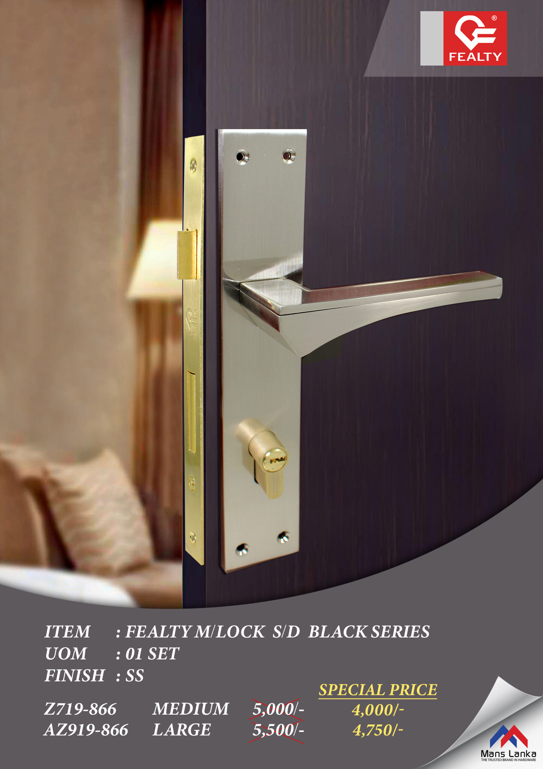 FEALTY M LOCK LARGE S D B SERIES SS AZ719-866 MEDIUM 08